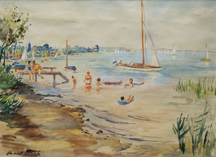 Hansl Bock, ohne Titel (Sommer in Holzhausen am Ammersee), o. J., Gouache auf Papier, 28 x 38 cm, Privatbesitz © JES Kulturstiftung