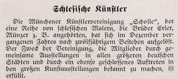 Text: Regina M. FischerLITERATURMeier, Burkhard: Deutschland auf der internationalen Kunstausstellung in Rom 1911, in: Die Kunst für Alle, Malerei, Plastik, Graphik, Architektur 26 (1910-1911), Nr. 23, S. 529-539. Nebel, Monika: Chronik der Künstlervereinigung „Scholle“. In: Unterberger, Siegfried/Billeter, Felix/Strimmer, Ute (Hrsg.): Die Scholle. Eine Künstlergruppe zwischen Secession und Blauer Reiter, München 2007, S. 276-289. Schlesien 6 (1912/13), Nr. 15, S. 424.Schroeter, Christina: Fritz Erler. Leben und Werk, Hamburg 1992