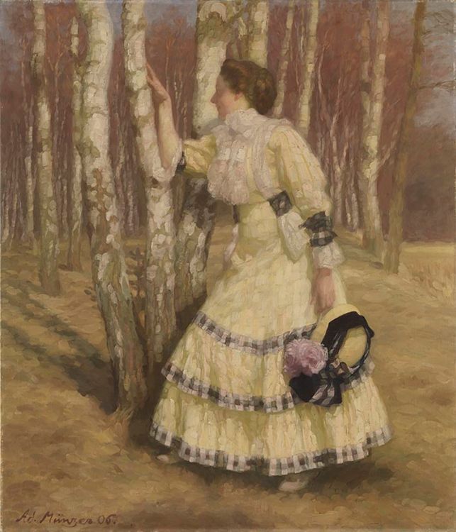 Adolf Münzer, Dame im Birkenwald, 1906, Öl auf Leinwand, 211 x 181,5 cm, Bayerische Staatsgemäldesammlungen - Neue Pinakothek München