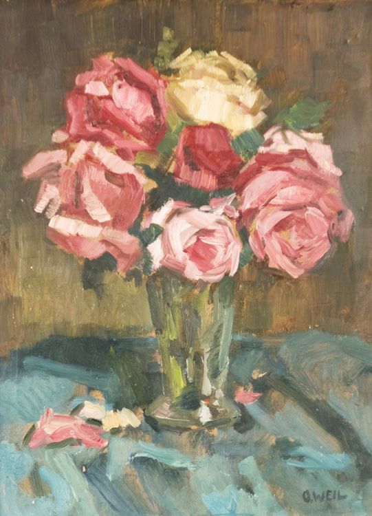 Otto Weil, Rosen, Öl auf Pressspan, 39 x 30 cm, Privatsammlung