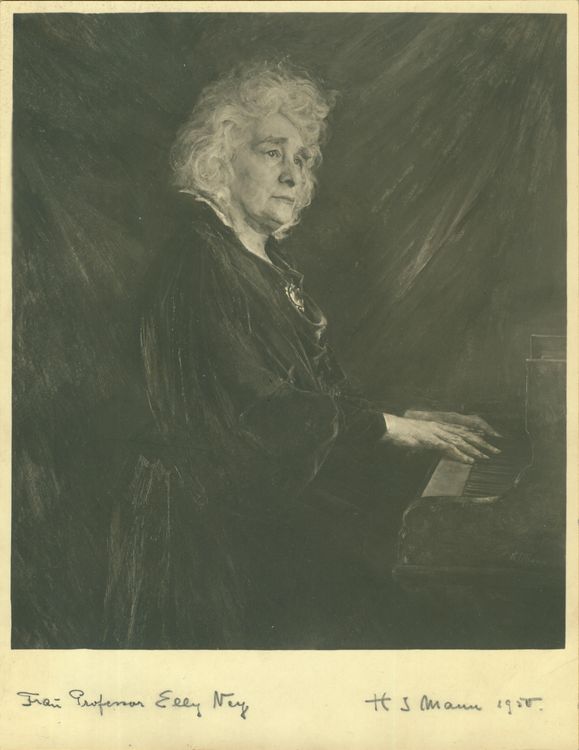 Hans Jakob Mann, Frau Professor Elly Ney, 1950, Öl auf Malkarton, 100 x 90 cm, Verbleib unbekannt, Abb. nach Bebildertem Werkverzeichnis, Privatbesitz, © Rosemarie Mann-Stein