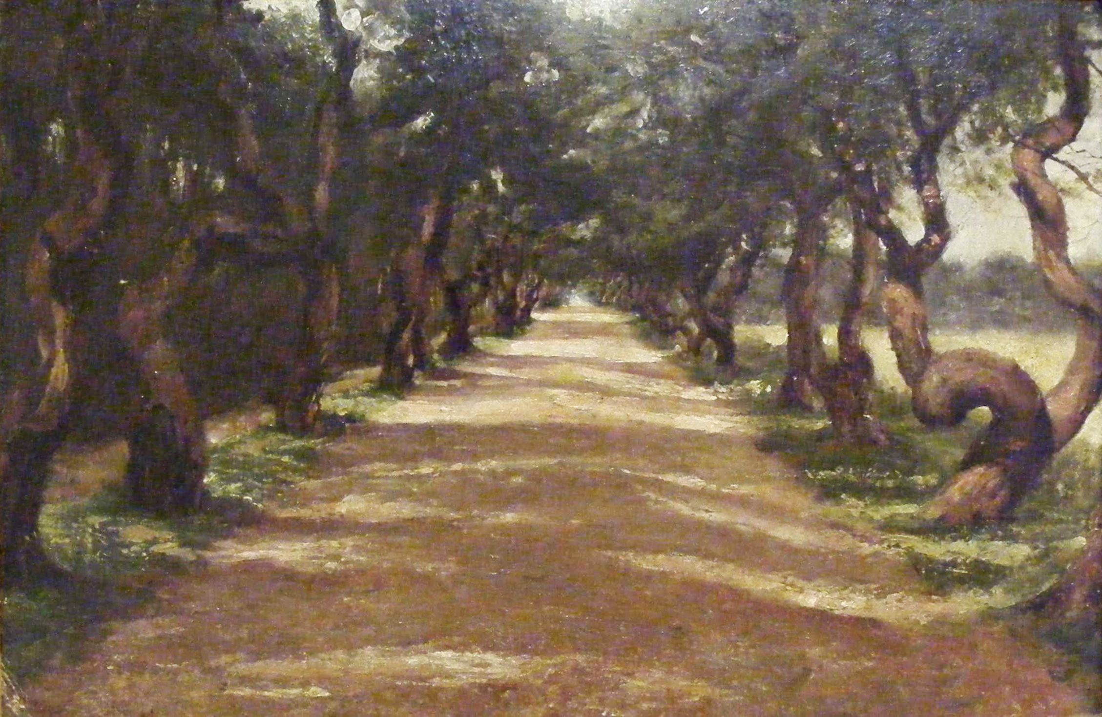 Eduard Selzam, Die Scheppallee, o. J., 32 x 47 cm, Ölfarbe auf Karton, Städtische Kunstsammlung Darmstadt - Institut MathildenhöheDie Städtische Kunstsammlung Darmstadt, die vom Institut Mathildenhöhe betreut wird, besitzt ein Ölgemälde von Eduard Selzam, „Die Scheppallee“, das die Inventar Nummer 5MA trägt. Es ist rückseitig oben rechts mit EDUARD SELZAM signiert.Selzam malte die Ansicht eines Naturdenkmals seiner Heimatstadt, einer Allee mit 160 Kiefern. Da diese zumeist verkrüppelt waren und schief standen, erhielt die Allee den Namen Scheppe Allee, „schepp” bedeutet umgangssprachlich schief. Die Allee wurde 1714 unter Landgraf Ernst Ludwig von Hessen-Darmstadt angelegt, sie hat eine Länge 750 Metern und wurde nach dem Zweiten Weltkrieg dicht bebaut. Eine undatierte Postkarte, die Edo, wie Eduard Selzam innerhalb der Familie genannt wurde, an seine Frau Agathe von einem Besuch in Darmstadt schrieb, zeigt auf der Vorderseite dasselbe Motiv. Den Kiefern mit ihren teils stark verkrüppelten Stämmen gilt sein malerisches Interesse ebenso wie dem Spiel von Licht und Schatten, das die Bäume auf der nach hinten schmal zulaufenden Allee zeigen.Teilen
