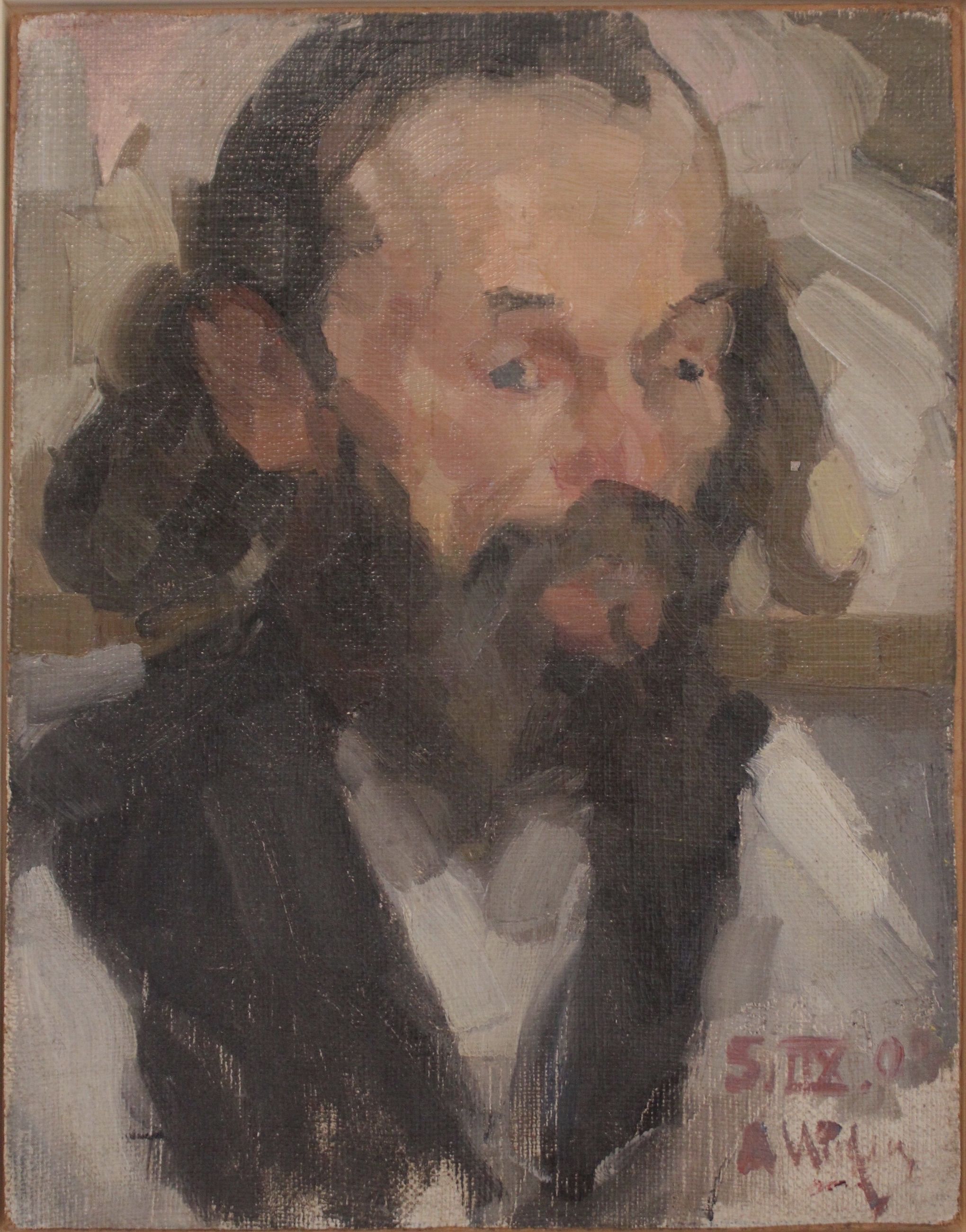 Adolf Höfer hatte sich im April 1890 an der Münchner Kunstakademie in der Naturklasse von Johann Caspar Herterich (1843-1905) eingeschrieben.Vermutlich folgte er damit dem Vorbild seines Vaters, Heinrich Höfer, der als Maler idealisierter Landschaften im Stile des Realismus erfolgreich war.Herterich, der selbst auch an der Münchner Akademie studiert hatte, war zunächst 1882 als Hilfslehrer dort eingestellt worden und seit 1884 Professor für Landschaftsmalerei.Bei ihm erhielt Adolf Höfer erste Grundlagen der klassischen Landschaftsmalerei, ehe er um 1893 in die Klasse von Prof. Paul Hoecker wechselte, der mit seinen Studenten direkt vor der Natur malte.Offenbar bestand der Kontakt zu seinem ersten Lehrmeister auch noch nach der Studienzeit weiter. Mit breiten lockeren Pinselstrichen gibt Höfer das Gesicht und die Schulterpartie Herterichs wieder. Er wählt also den Bildausschnitt einer Büste, eine typische Form für Porträts. Der zweiundsechzigjährige Maler hat lange Haare. Ein Backenbart umrahmt das leicht eingefallene Gesicht. Sein Blick scheint gedankenverloren. Bis auf wenige Akzente, wie einem verhaltenen Rotton zur Modellierung des Gesichts und einem wässrigen Blau der Pupillen, bleibt die Farbigkeit auffallend verhalten. Höfer verzichtet auf die detaillierte Wiedergabe der Umgebung, lediglich ein Sims oder der untere Teil eines Rahmens, der sich auf Kinnhöhe hinter dem Dargestellten befindet, teilt das Bild horizontal in der Mitte. Durch die lockere, skizzenhafte Malweise und den Verzicht auf Detailgenauigkeit weist die Bildfigur nur eine geringe Plastizität auf, ebenso ist die Raumtiefe weitgehend aufgegeben. Höfer signiert das Bild unten rechts mit roter Farbe, die er mit dem Pinsel aufträgt und auf den 5. August 1905 datiert. Seine Ölskizze entstand also nur wenige Wochen vor Herterichs Tod am 26. Oktober desselben Jahres. Sein Nachfahre und Biograf schreibt zu diesem Bild: „[] die Porträtskizze Johann Kaspar [sic]Herterichs, seines verehrten Lehrers an der Münchner Kunstakademie [...]….Adolf Höfer hatte ihn kurz vor seinem Tod mit allem Respekt gemalt“ (Gerheuser, S. 2).Text: Regina M. Fischer